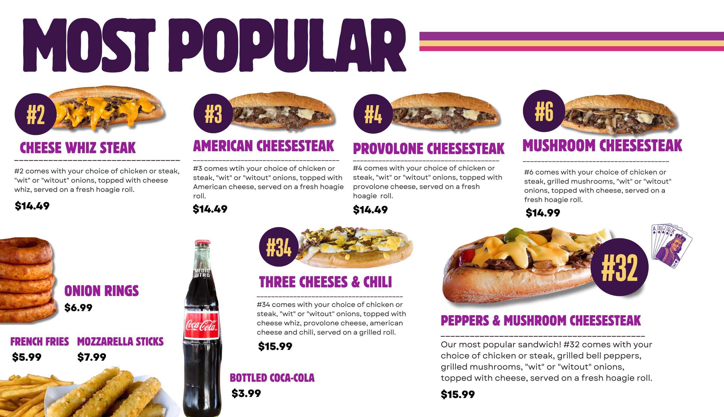 Pride of Philly Steaks Menu – Cheesesteaks, Sandwiches & Takeout Favorites