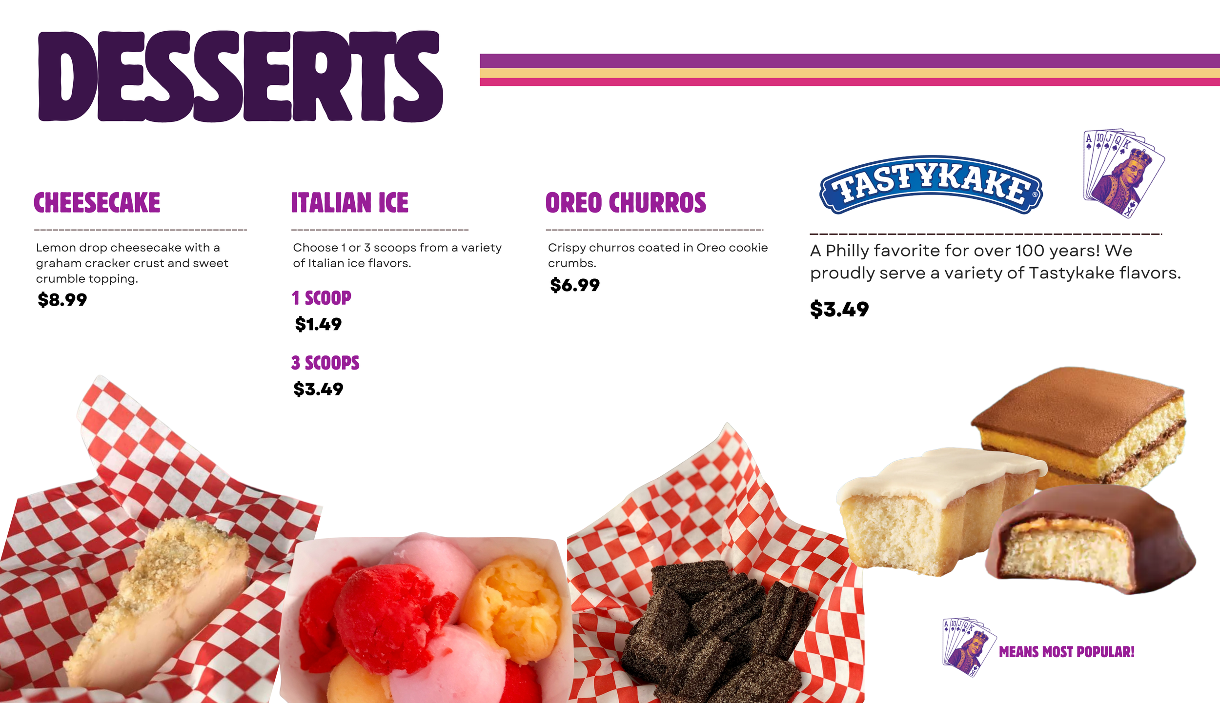 Get ready to dig into the authentic Philly flavor that made us a Las Vegas favorite! At Pride of Philly Steaks, our menu is packed with East Coast classics and comfort food favorites—all made fresh to order, 24/7/365. From our most popular #32 Pepper & Mushroom Cheesesteak to the Pork BBQ Grinder, Cheesesteak Hoagie, and Bacon & Swiss Cheesesteak, every bite brings the taste of Philly straight to the desert. Looking for sides? Don’t miss the Fried Green Beans, Mozzarella Sticks, and crispy Onion Rings—perfect for pairing with any meal. We’ve also got sweet treats like rich, creamy Cheesecake and iconic Tastykakes to finish it all off. Whether you're stopping in for lunch, grabbing a late-night bite, or feeding a crew with catering, our menu has something for everyone. Explore all our mouthwatering options below and find out why Pride of Philly Steaks is a true Vegas original with Philly roots!